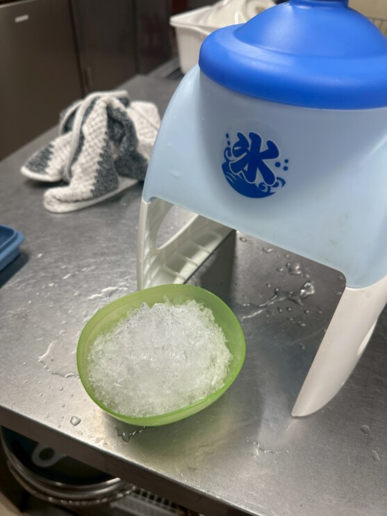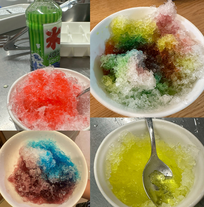 氷を削るのが意外と楽しく、子どもたちも楽しんで削っていました。シャリシャリ削る音と口の中はひんやり。猛暑続きでしたが、夏っぽい一時を楽しみました。