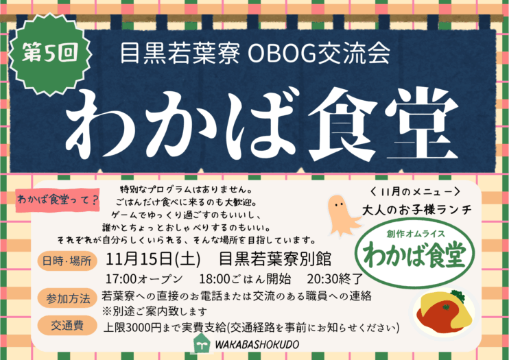 OB・OG対象 「わかば食堂」 第5回のお知らせ【11/15(土)】