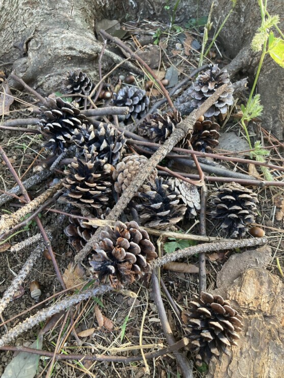でも、どんぐりや松ぼっくりがたくさん落ちていました。