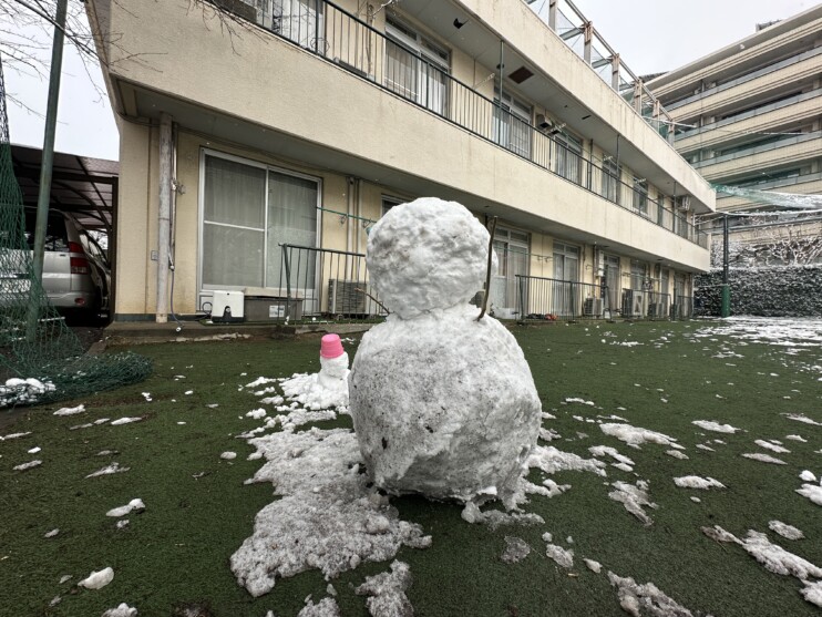 翌日には多くの雪がとけてしまいましたが、子ども達は元気に「雪だるま作ったんだよ!」と色々な職員に教えていました。