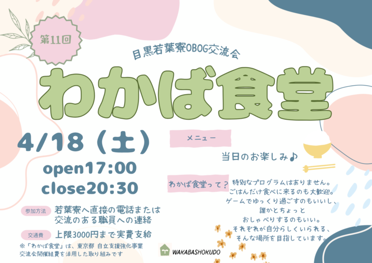 【4/18実施】OB・OG対象「わかば食堂」第11回のお知らせ